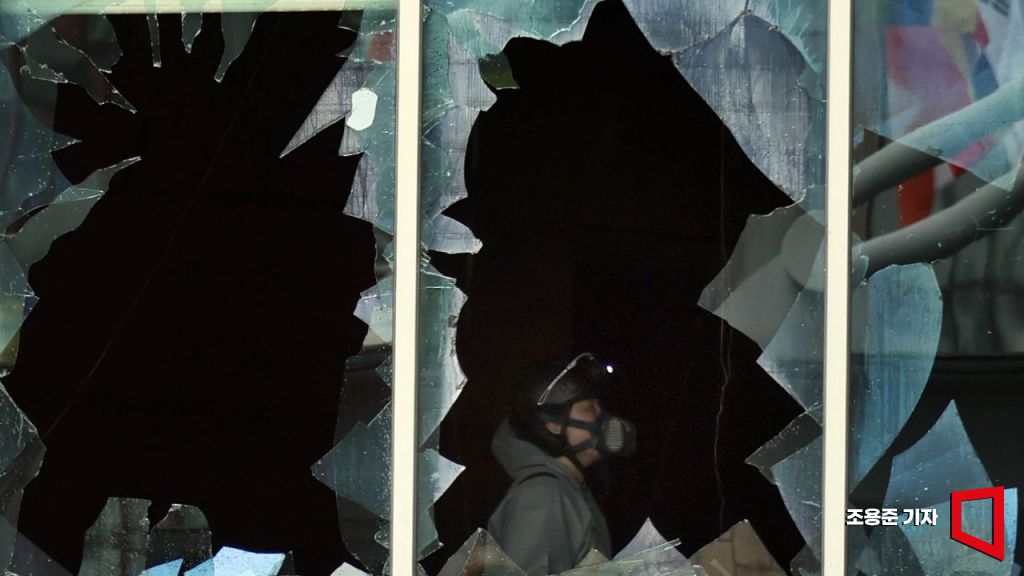[포토] 불난 한국불교역사문화기념관 살펴보는 소방관