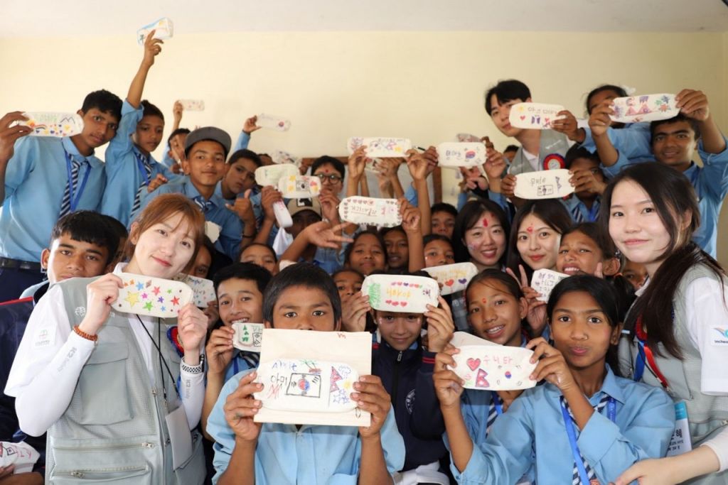 인천국제공항공사 임직원으로 구성된 봉사단원들이 네팔 슈르켓 지역 아동 대상으로 교육 봉사활동을 하고 있다. 인천공항공사 제공