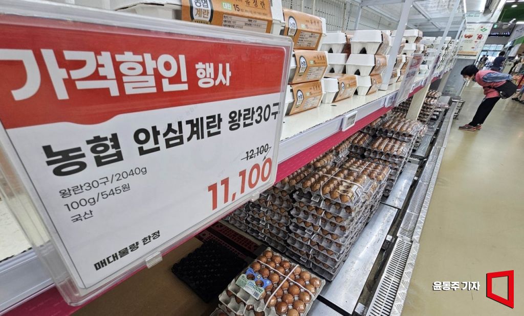 계란 가격이 전년대비 11.5% 상승하며 계란 한 판 가격이 평균 7천원을 넘어서며 '밥상물가'가 비상이다. 사진은 10일 서울의 한 대형마트의 계란 판매대 모습.