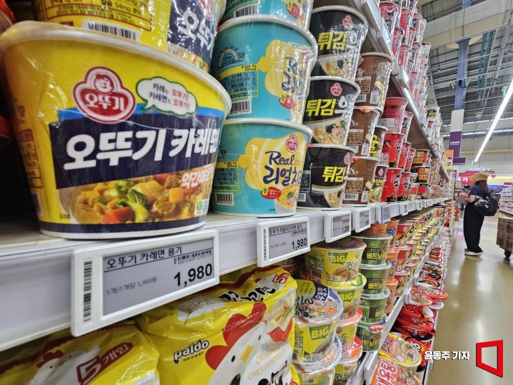 계임사태 이후 기업들이 커피, 빵, 냉동식품, 라면 등 가공식품 53개 품목에 대해 가격을 인상하면서 '밥상물가'가 비상이다. 그동안 기업이 정부의 물가 안정 대책에 협조하는 차원에서 가격 인상을 자제해오다 국정 공백기에 제품 가격을 무더기로 올렸다는 분석이 많다.사진은 10일 서울의 한 대형마트 라면 판매대 모습.