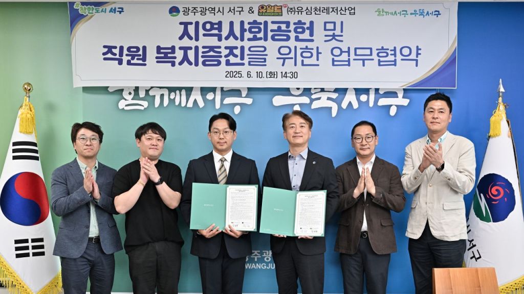 광주시 서구(구청장 김이강)와 ㈜유심천레저산업(대표이사 김영권)이 10일 취약계층의 문화 향유 기회 제공과 공직자 복지 향상을 위해 손을 맞잡았다.