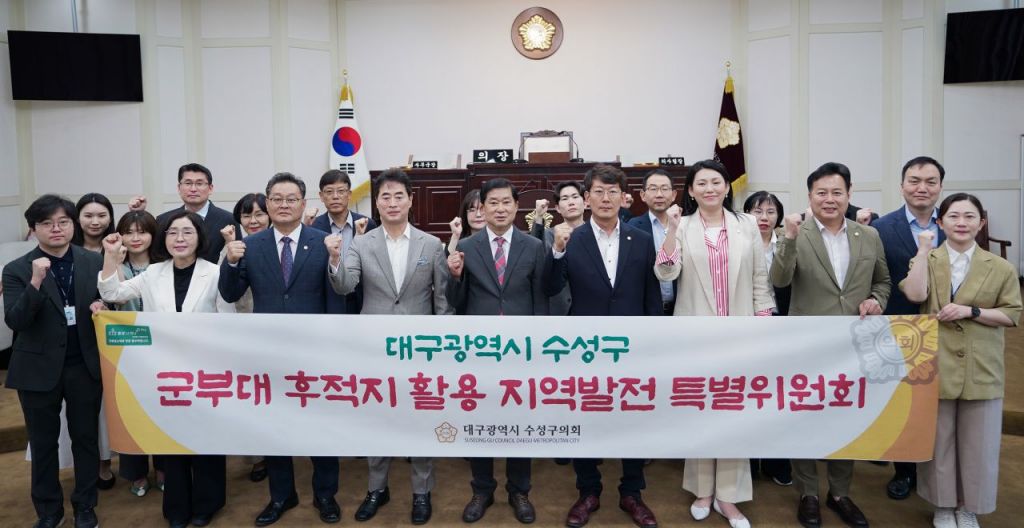 군부대 후적지 활용 지역발전 특별위원회는 결의문을 통해 군부대의 조속한 이전을 촉구하고 후적지를 수성구 100년 미래를 여는 전략 거점으로 개발하며 중앙정부와 지자체의 신속하고 실질적인 지원을 요청할 것을 촉구했다.