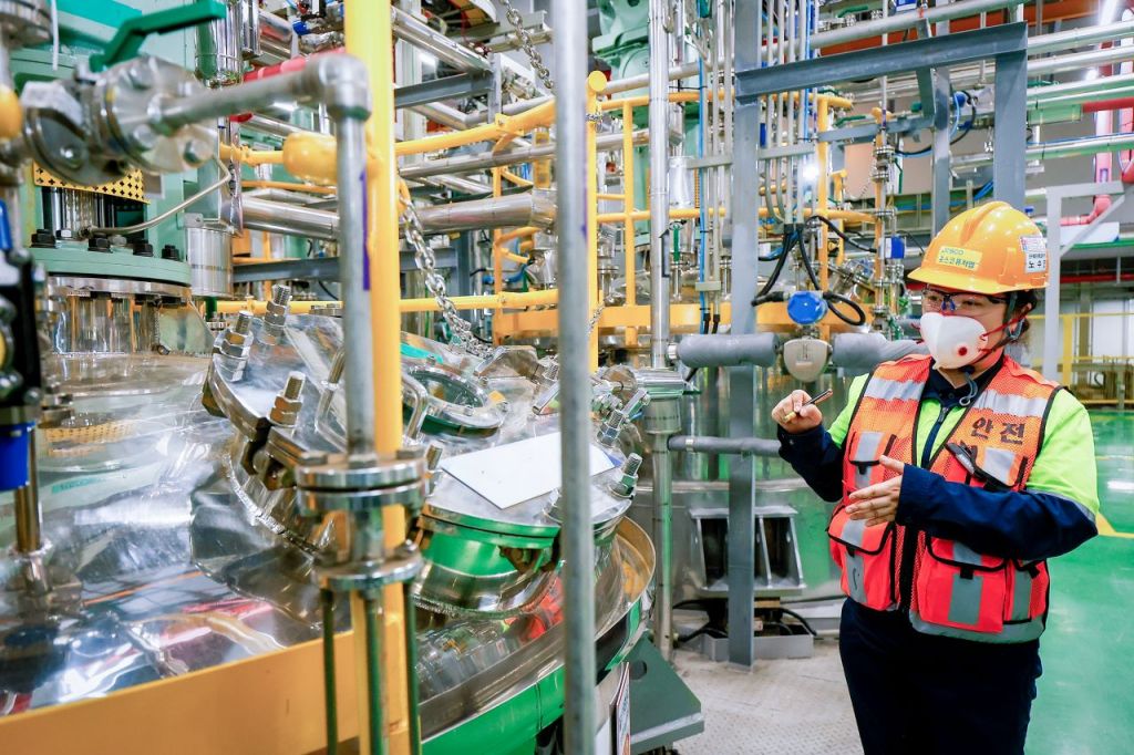 노수진 포스코퓨처엠 광양 전구체 공장장이 생산설비를 소개하고 있는 모습. 포스코퓨처엠 제공