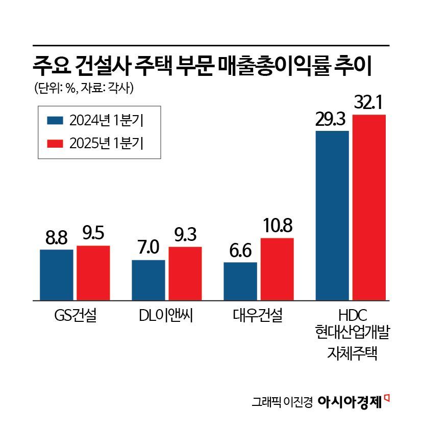 업계 관계자는 "과거와 비교할 때 수주의 질이 좋아졌는데 평당 500만원에 공사 수주를 하던 것에서 공사비 상승이 반영된 800~900만원에도 수주를 해 이익률이 회복되고 있다"라며 "매출 기여도가 큰 주택 부문의 사업성이 높아지면서 향후 실적 개선에 대한 기대도 나오고 있다"라고 설명했다.