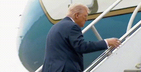 도널드 트럼프 미국 대통령이 전용기에 오르다 계단에서 휘청이며 넘어질 뻔한 모습이 담긴 영상이 온라인상에서 급속히 확산하고 있다.