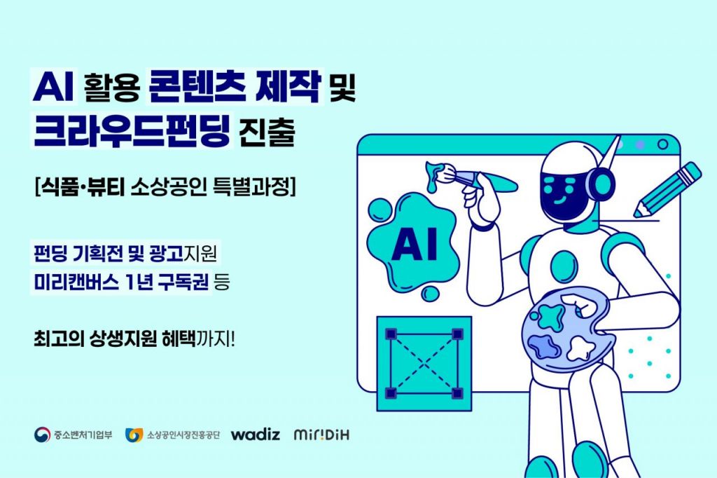 미리디, 와디즈가 함께하는 'AI 활용 콘텐츠 제작 및 크라우드펀딩 진출 과정'은 뷰티(1·3기), 식품(2·4기) 업종으로 나눠 진행된다. 교육생들은 AI를 활용해 상세페이지 디자인, 콘텐츠 제작, AI 마케팅, 펀딩 전략 기획까지 실전 역량을 키우게 된다. 또한, 와디즈 크라우드펀딩 기획전, 미리캔버스 Pro 1년 구독권, 1대 1 맞춤형 컨설팅 등의 혜택도 마련돼 있다.