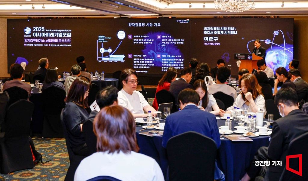 이준구 큐노바 대표가 11일 서울 중구 롯데호텔에서 아시아경제 주최로 열린 ‘2025 아시아미래기업포럼’에 참석해 기조연설 하고 있다.