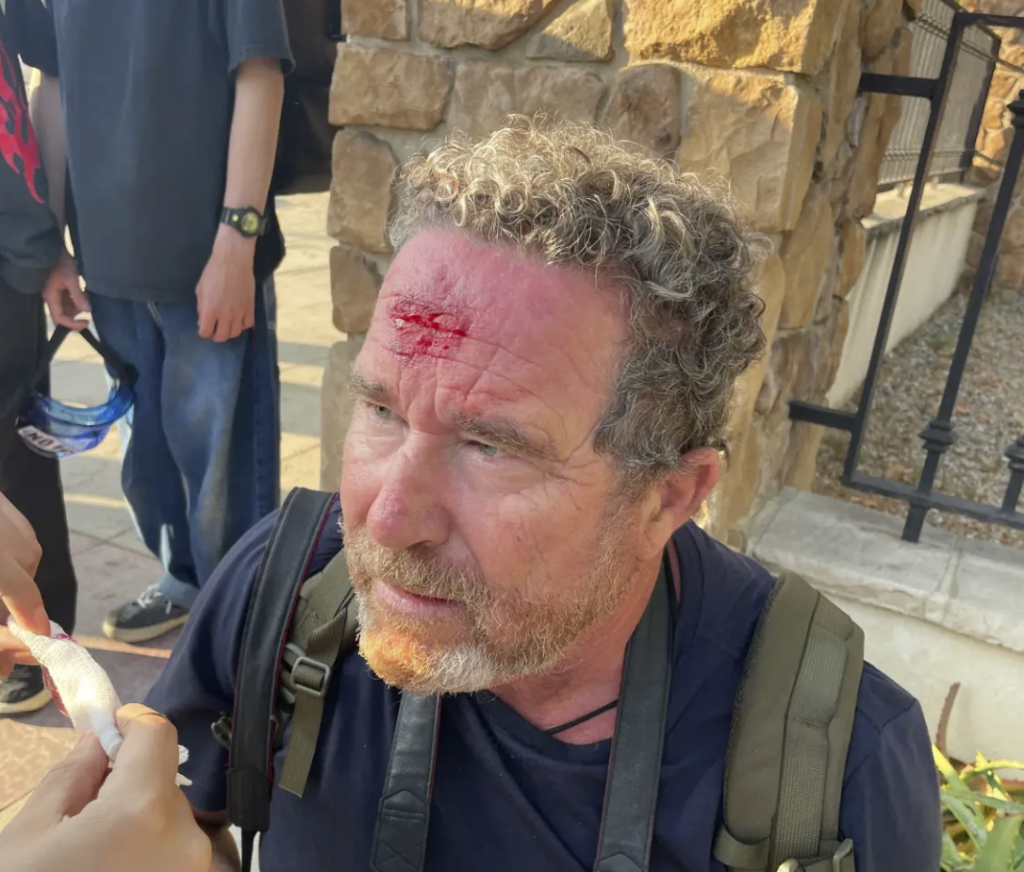 뉴욕포스트 소속 사진기자 토비 캔햄이 미국 LA 시위 현장을 취재하던 중 이마에 고무탄을 맞아 다쳤다. 뉴욕포스트