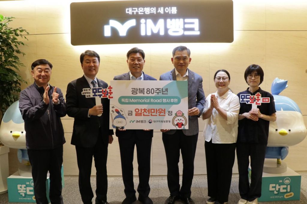 이번 후원금은 iM뱅크(은행장 황병우)가 광복 80주년을 맞아 마련한 것으로, 지역 내 독립운동 유적지와 독립기념관을 방문해 독립운동가의 발자취를 되새기고 독립유공자 유족에게 감사의 뜻을 전하는 행사를 지원하기 위한 목적이다.