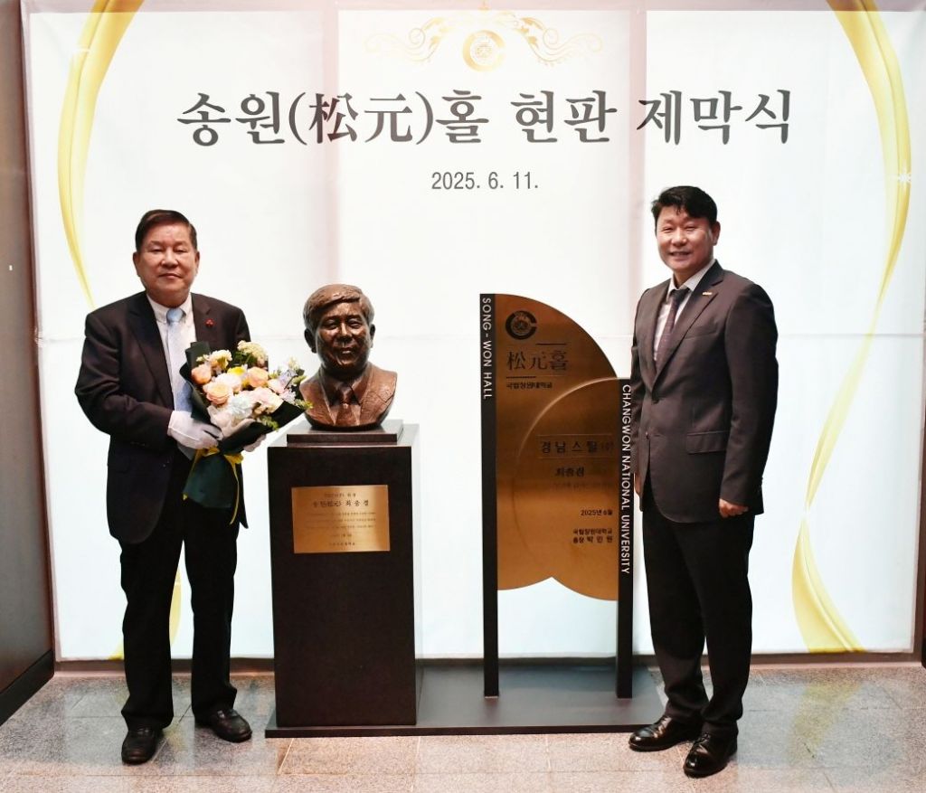 국립창원대학교가 11일 제2학생회관(COSS) 1층 대강당에서 '송원홀' 현판 제막식을 열었다.