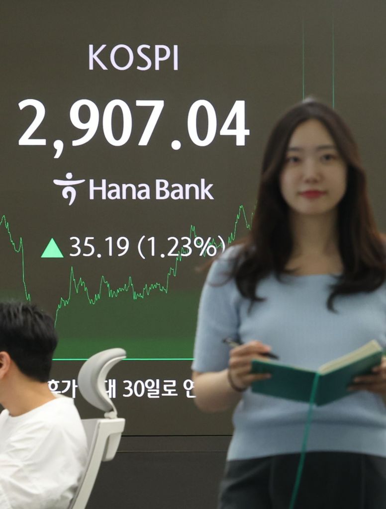코스피가 2900대에 안착한 11일 서울 중구 하나은행 딜링룸 현황판에 코스피 종가가 표시돼있다. 연합뉴스