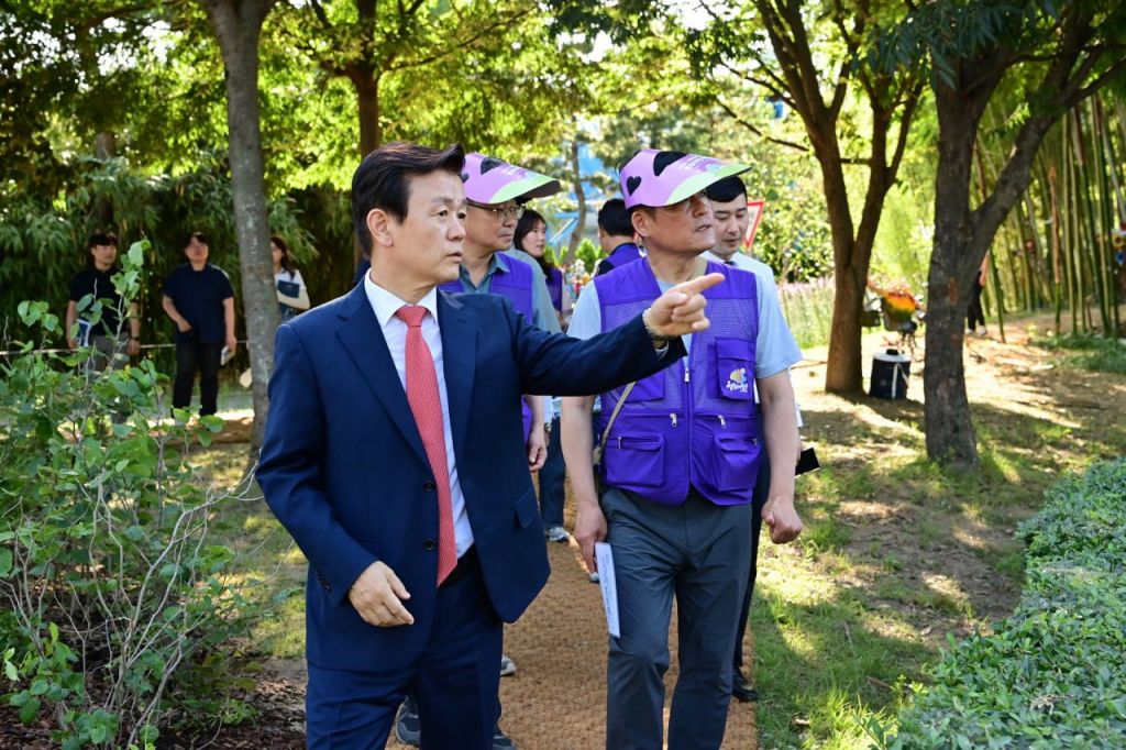 현장 점검에서는 ▲시민 정원사 마을 권역 ▲정원전시권역 ▲정원산업전 권역 ▲실내체육 관권 역의 권역별 전반적인 상황을 확인하며, 행사장을 찾는 관람객들의 편의와 안전을 최우선으로 고려하여 준비가 철저히 이뤄지고 있는지를 중점적으로 점검했다.