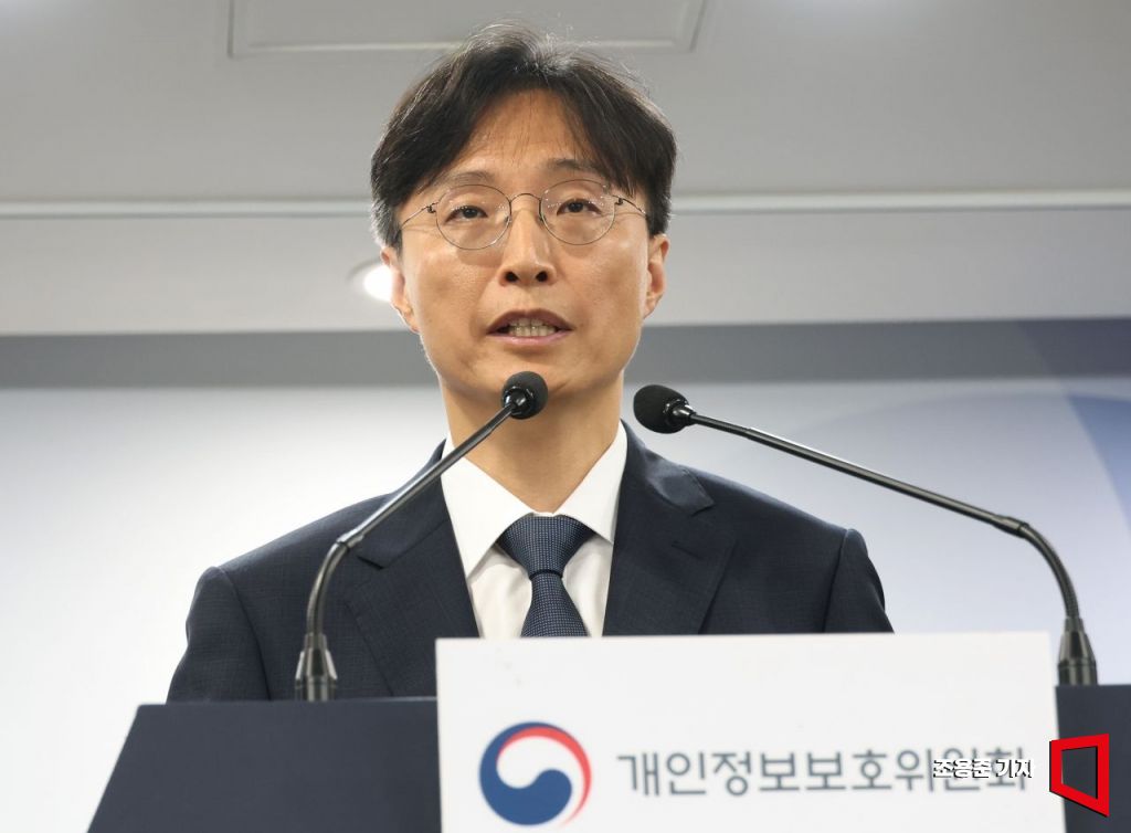 강대현 개인정보보호위원회 조사총괄과장이 12일 서울 종로구 정부서울청사에서 안전조치 소홀로 개인정보를 유출한 전북대학교와 이화여자대학교에 대해 9억 6,600만 원의 과징금 부과를 발표하고 있다.