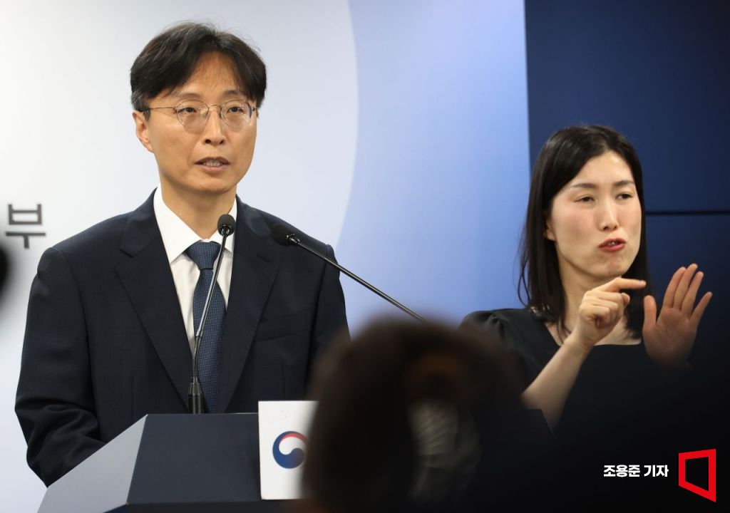 강대현 개인정보보호위원회 조사총괄과장이 12일 서울 종로구 정부서울청사에서 안전조치 소홀로 개인정보를 유출한 전북대학교와 이화여자대학교에 대해 9억 6,600만 원의 과징금 부과를 발표하고 있다.