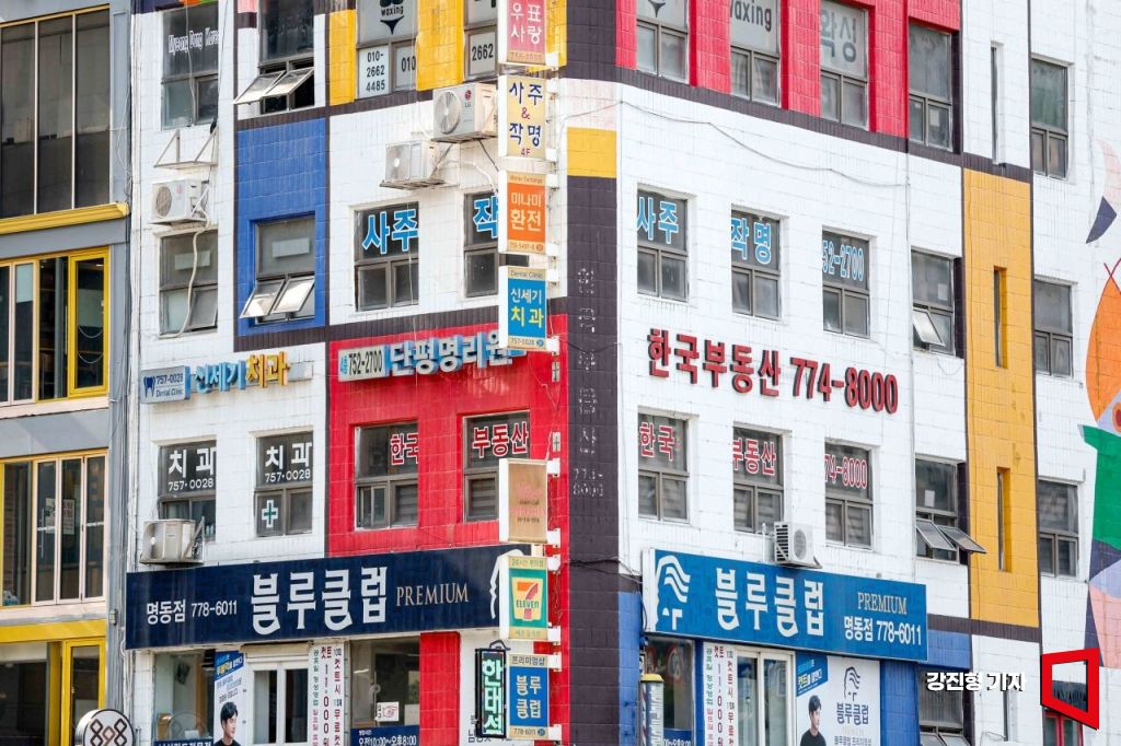 서울 명동의 작은 빌딩 벽을 빨강, 파랑, 노랑으로 조각을 나누어 칠해 놓았다. 여러 사람들의 여러가지 바람들이 있다고 색이 말하고 있는 듯하다.