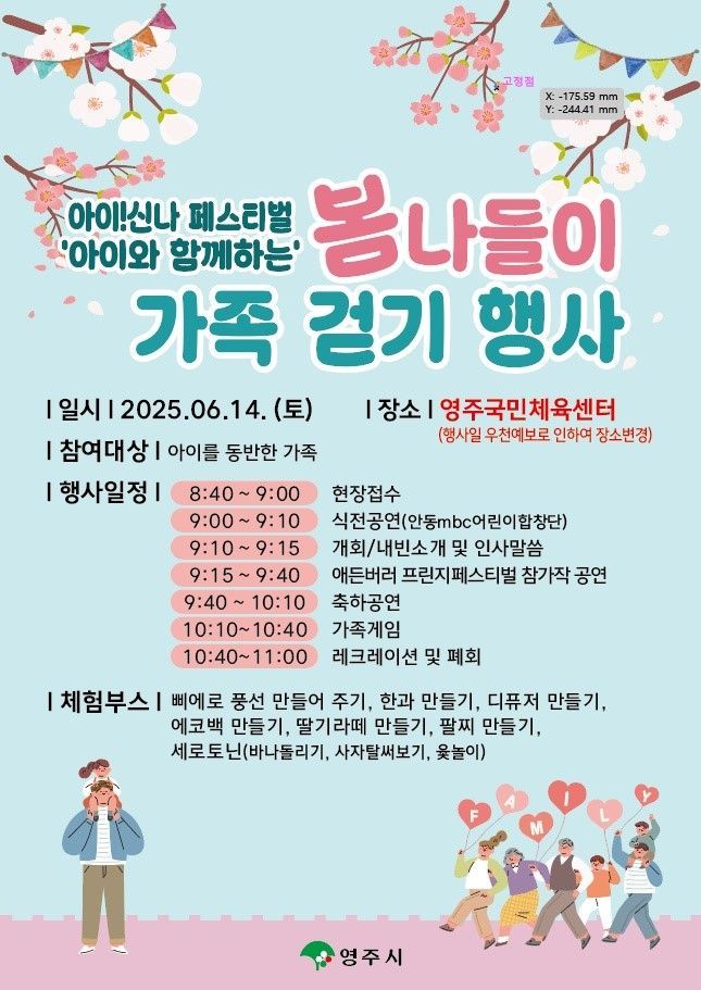 경북 영주시는 오는 14일 오전 9시부터 영주국민체육센터에서 '2025 영주 아이! 신나 페스티벌-봄나들이 가족걷기 행사'를 개최한다.