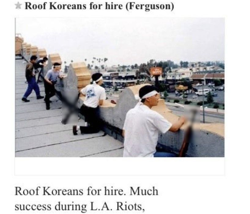 같은 해 8월 미국 최대 온라인 커뮤니티 '레딧'에는 "(퍼거슨 사태를 해결하기 위해) 루프탑 코리안을 고용하자"라는 글이 올라왔는데, 이 글은 순식간에 수천개의 추천과 댓글을 받으며 반향을 일으켰다.