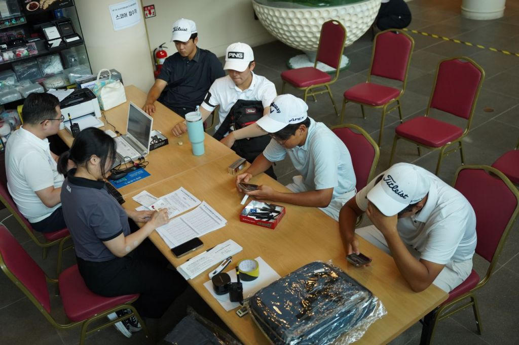'제11회 아시아경제 호남배 주니어골프 챔피언십' 대회 첫날 일정을 마무리하고 선수들이 스코어 카드를 제출하고 있다. 송보현 기자