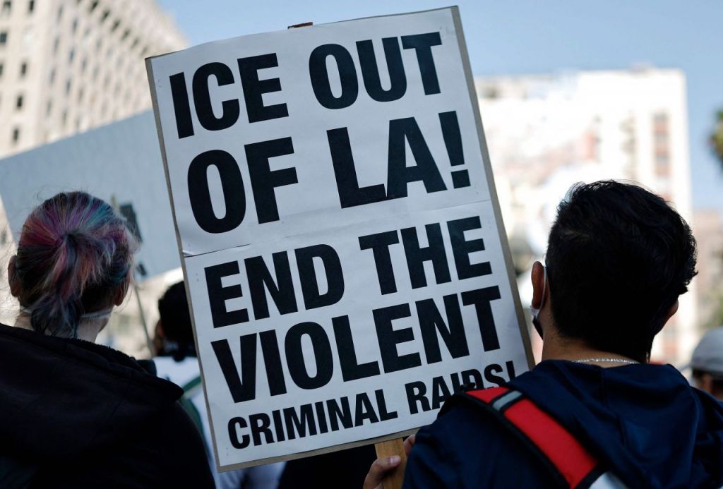 캘리포니아주 로스앤젤레스에서 열린 ICE 이민 단속 반대 시위. 게티이미지연합뉴스
