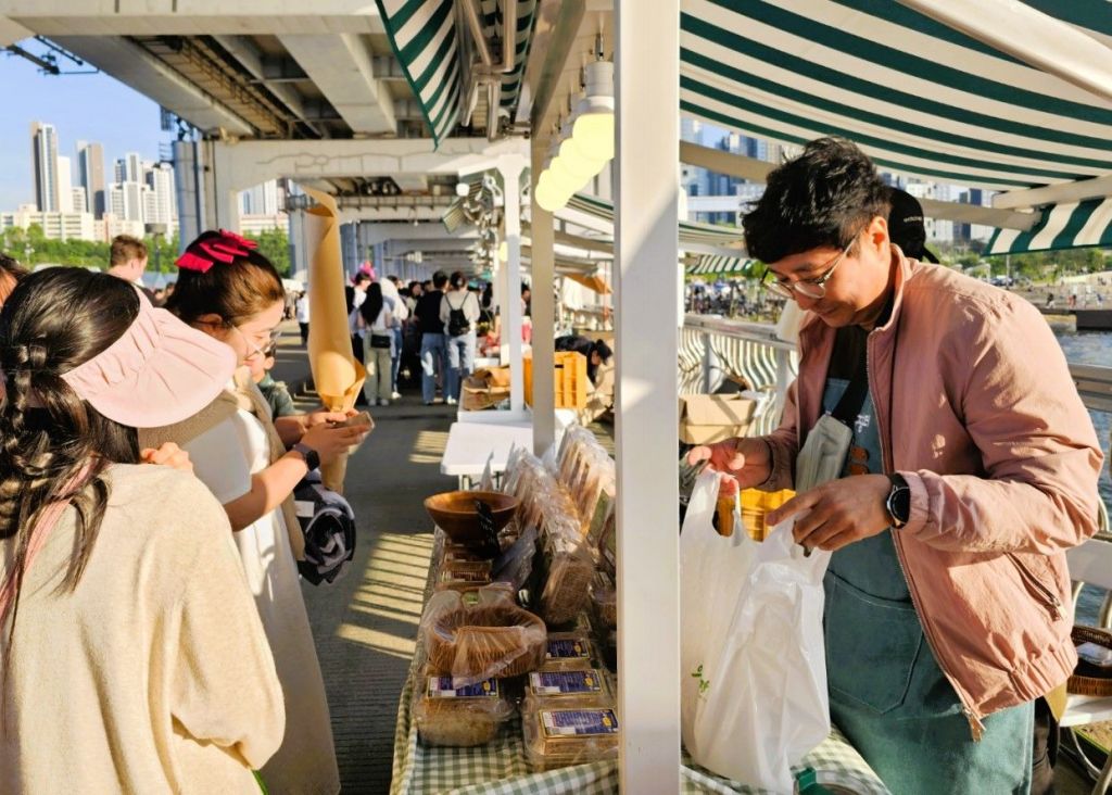 서울 잠수교에서 열린 ‘뚜벅뚜벅축제’ 직거래장터에서 시민들이 장성군 농특산물을 살펴보고 있다. 장성군 제공