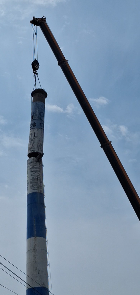 노후굴뚝 해체 작업.(상부 컷팅 완료, 6월 8일) 울산시 제공