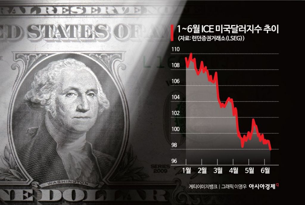 기축통화이자 안전자산의 대명사였던 달러의 가치가 3년 만에 최저 수준으로 떨어졌다. 도널드 트럼프 행정부의 관세정책과 물가 둔화, 감세안 및 지출 확대에 따른 재정건전성 우려가 복합적으로 작용한 결과로 풀이된다. 여기에 중동발 지정학 리스크와 미·중 무역 합의 불확실성까지 맞물리며 외국인 투자자들의 '셀 아메리카' 흐름에 가속도가 붙을 것이란 전망마저 나온다.