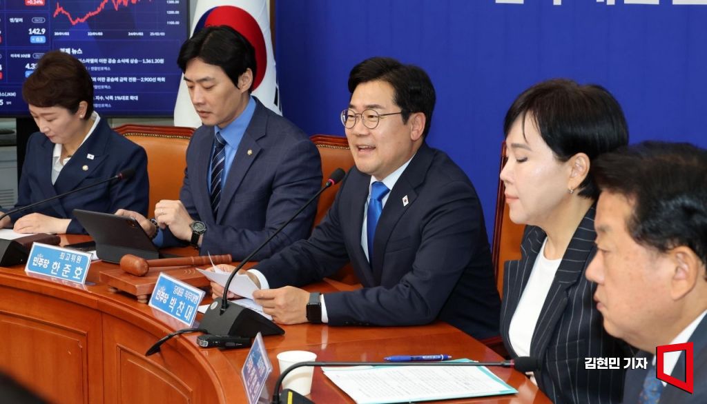 박찬대 더불어민주당 당 대표 직무대행 겸 원내대표가 13일 국회에서 열린 최고위원회의에서 발언하고 있다.