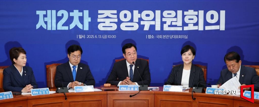 민홍철 더불어민주당 중앙위원회 의장이 13일 국회에서 열린 제2차 중앙위원회의에서 발언하고 있다.