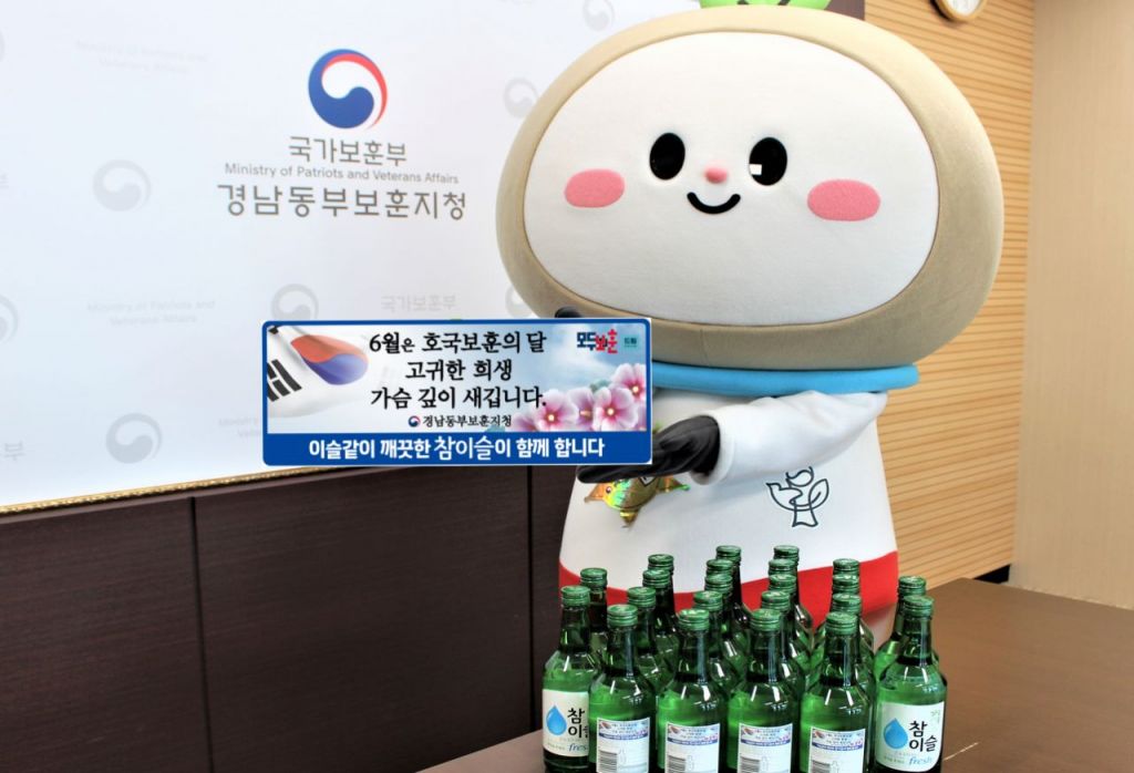 국가보훈부 경남동부보훈지청은 13일 6월 호국보훈의 달을 맞아 하이트진로 마산공장과의 협업으로 대표 소주 브랜드인 '참이슬' 병 제품에 호국보훈 메시지를 담은 보조라벨을 부착해 출시했다고 밝혔다.