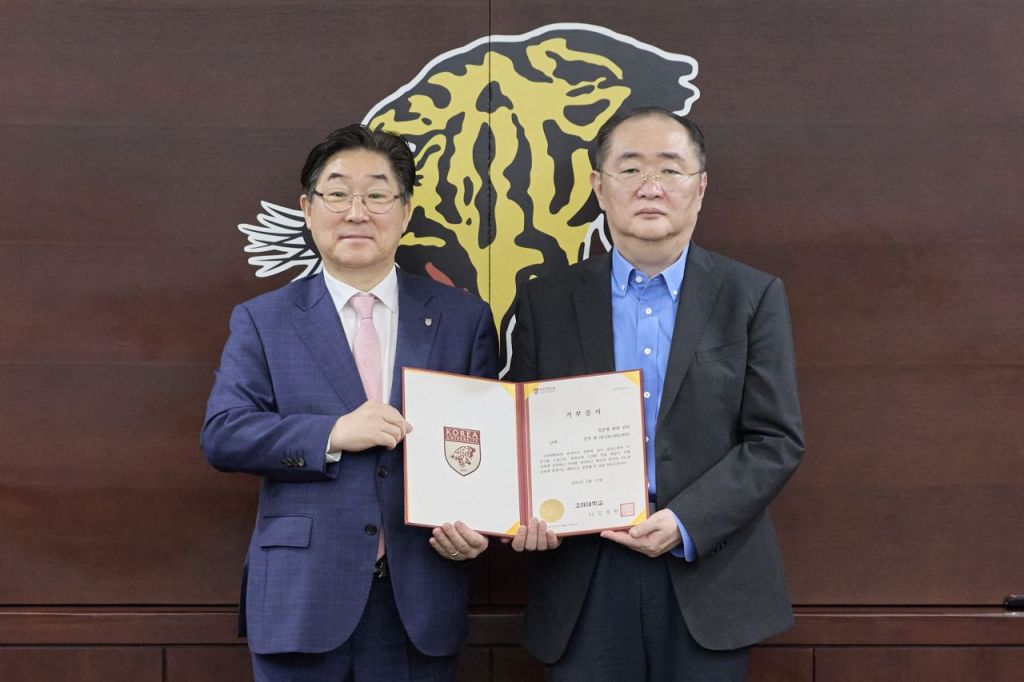 (왼쪽부터) 김동원 고려대 총장, 정준형 회장. 고려대학교