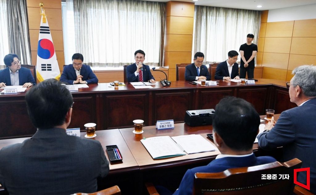 김민석 국무총리 후보자가 13일 서울 종로구 통의동 금융감독연수원에 마련된 청문회 준비단 사무실에서 식품, 외식 업계 관계자들이 참석한 가운데 열린 '밥상물가 안정을 위한 경청 간담회'에서 발언을 하고 있다.