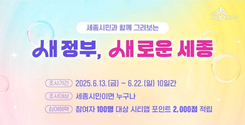 최민호 시장은 "새 정부 출범이라는 중요한 시점에 시민 여러분의 소중한 목소리를 담아 새로운 세종의 미래 비전을 구체화할 기회"라며 적극적인 동참을 당부했다.