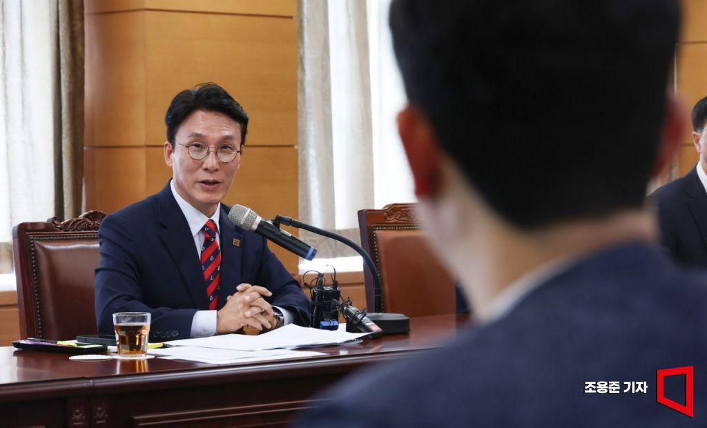 김민석 국무총리 후보자가 13일 서울 종로구 통의동 금융감독연수원에 마련된 청문회 준비단 사무실에서 열린 밥상물가 안정을 위한 경청 간담회에서 발언하고 있다.