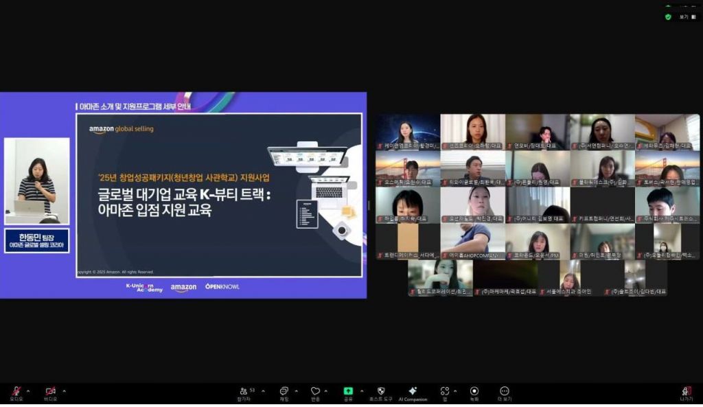 특히 핵심 과정인 아마존 글로벌셀링 입점 지원은 계정 생성, 브랜딩 등록, 리스팅 최적화, FBA 물류 실무, 광고 전략, 데이터 분석 등 총 117시간의 실습 중심 교육으로 진행되며, 아마존코리아 매니저의 시연과 환류 제공 및 셀러 클리닉을 통해 실전 역량 강화에 초점을 맞췄다.