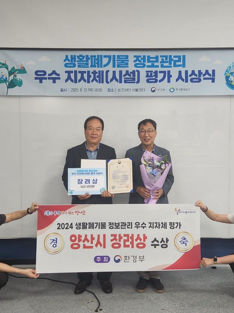 양산시가 '2024년 생활폐기물 정보관리 우수지자체 평가' 환경부장관상을 받았다. 양산시 제공