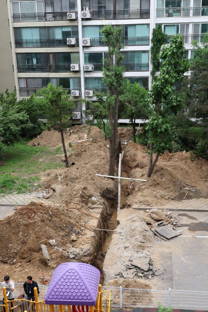 서울 강남구 대치동 은마아파트 하수관 교체 공사 현장에서 매몰 사고가 발생해 작업자 2명이 병원에 이송됐다.