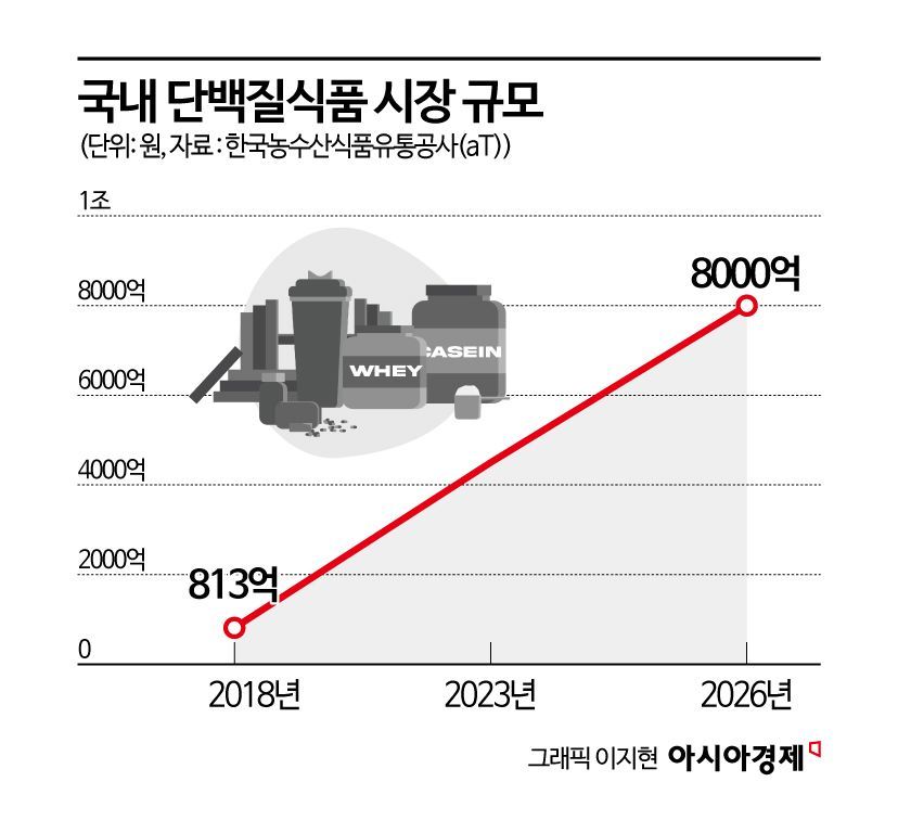 16일 한국농수산식품유통공사(aT)에 따르면 2018년 813억원이었던 국내 단백질 시장 규모는 2023년 4500억원으로 약 6배 성장했다. 오는 2026년에는 이보다 77.8% 증가한 8000억원에 달할 것으로 전망된다.