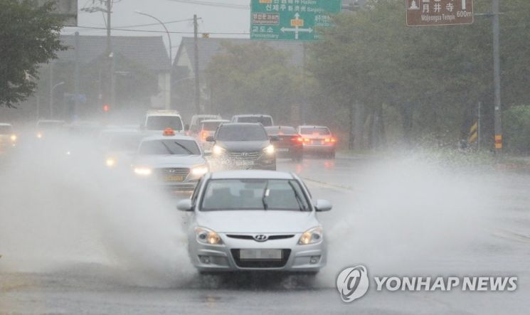 국지성 호우가 쏟아지는 가운데 차량들이 도로를 달리고 있다. 연합뉴스