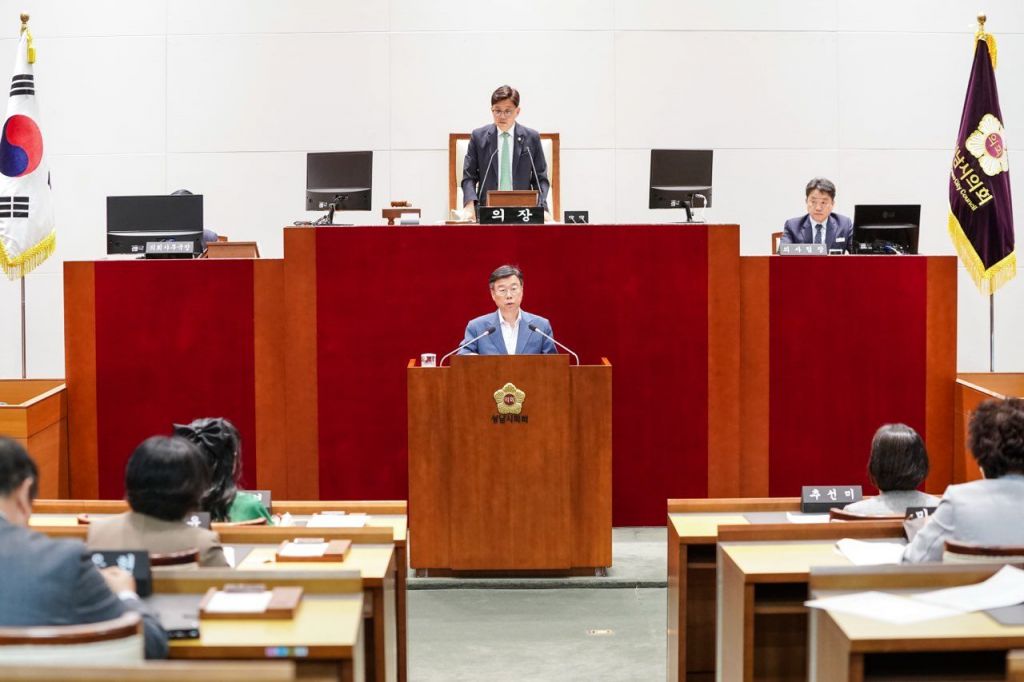 신상진 성남시장은 13일 열린 성남시의회 제1차 정례회 제2차 본회의에서 시정질문에 대한 총괄 답변을 통해 성남시가 추진 중인 주요 정책과 사업 추진 계획을 밝히고 있다. 성남시 제공