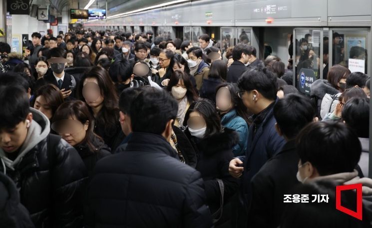 2024년 2월 광화문역에 출근하는 시민들로 붐비고 있다.