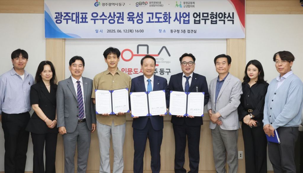 광주 동구는 최근 '광주 대표 상권 1호' 동명동 로컬콘텐츠 타운 조성을 위해 광주경제진흥상생일자리재단, 동명공동체상생협의회와 '광주 우수상권 집중 육성사업' 업무협약을 체결했다고 15일 밝혔다.