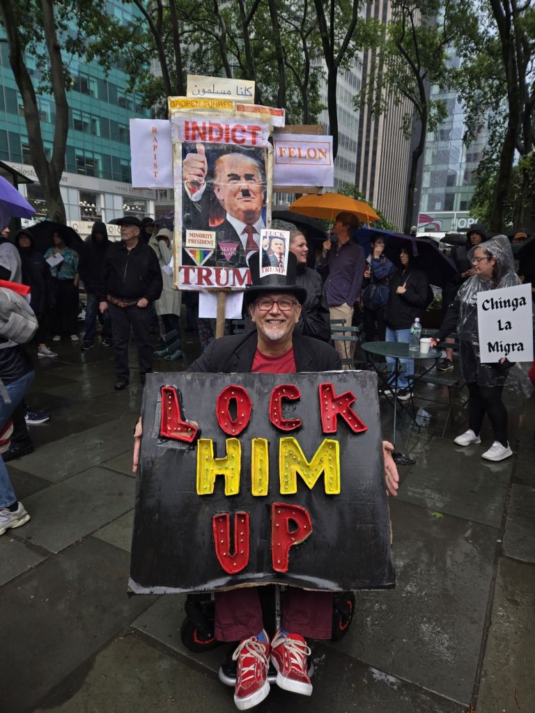 오후 2시 집회 시작 한 시간 전에 도착한 브라이언트 파크는 이미 시위에 참여하기 위해 모여든 시민들로 북적였다. 뉴욕은 필라델피아, 로스앤젤레스(LA), 시카고 등 주요 대도시와 함께 반(反)트럼프 시위가 예고된 곳 중 하나였다. 시민들은 직접 만든 피켓을 들고 "미국에 왕은 없다" "트럼프는 물러나라" "이민세관단속국(ICE) 아웃" 등의 구호를 외쳤다. 혹시 모를 충돌을 대비해 경찰 인력도 대거 배치됐다.