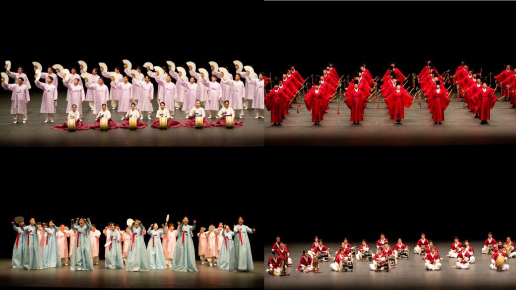크라운해태 한음회에서 임직원 국악동아리가 무대를 펼치고있다. 좌측 왼쪽 위부터 시계방향으로 판소리(판판세), 팔일무(팔풍의 몸짓), 민요(민요한번들어볼래요), 사물놀이(꿈을굽는 사물놀이)팀. (사진=크라운해태 제공)