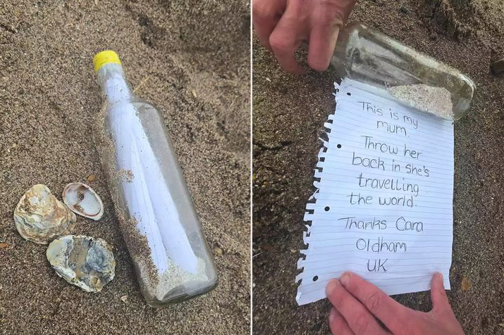 유리병을 발견한 켈리 셰리던 씨 가족은 쪽지의 사연을 읽은 뒤 병을 다시 바다에 띄우는 영상을 촬영해 사회관계망서비스(SNS)에 공유했다. 게시글에는 "카라 어머니, 즐거운 여행 되세요"라는 따뜻한 인사도 덧붙였다. 이 병은 카라 멜리아라는 여성이 하루 전에 바다에 던진 것으로 확인됐다.