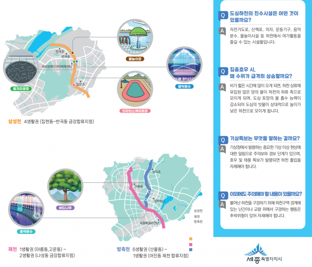 세종시가 제작한 우기철 도심하천 이용 주의 리플릿. / 그래픽= 환경녹지국 물관리정책과 제공