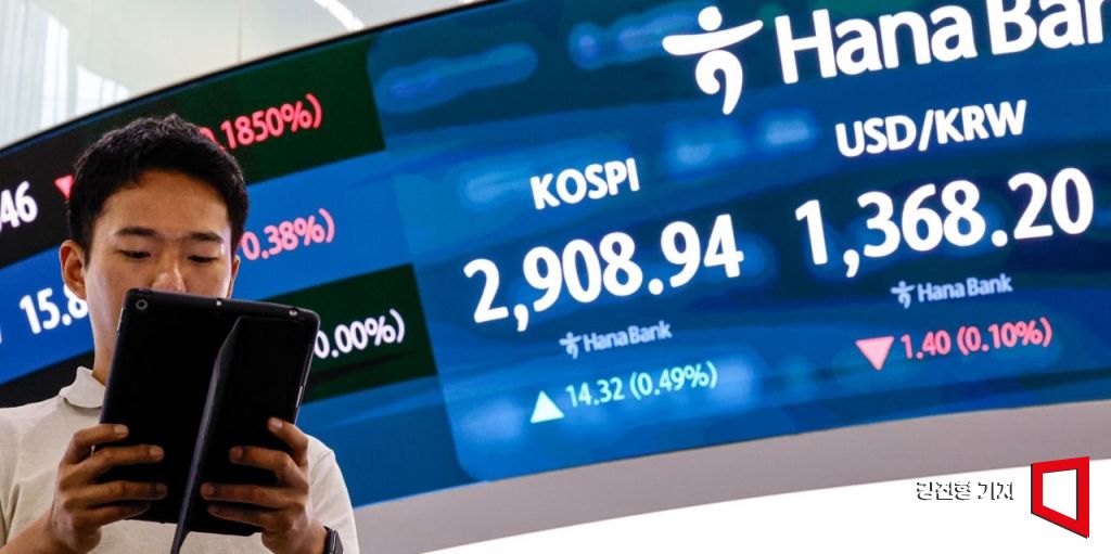 코스피 지수가 전 거래일 대비 8.88포인트 상승한 2903.50에 개장한 16일 서울 중구 하나은행 본점 딜링룸에서 딜러들이 업무를 보고 있다.