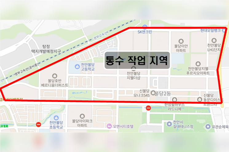 충남 천안시는 18일부터 19일까지 불당동 일대에 통수 작업을 진행한다고 16일 밝혔다.