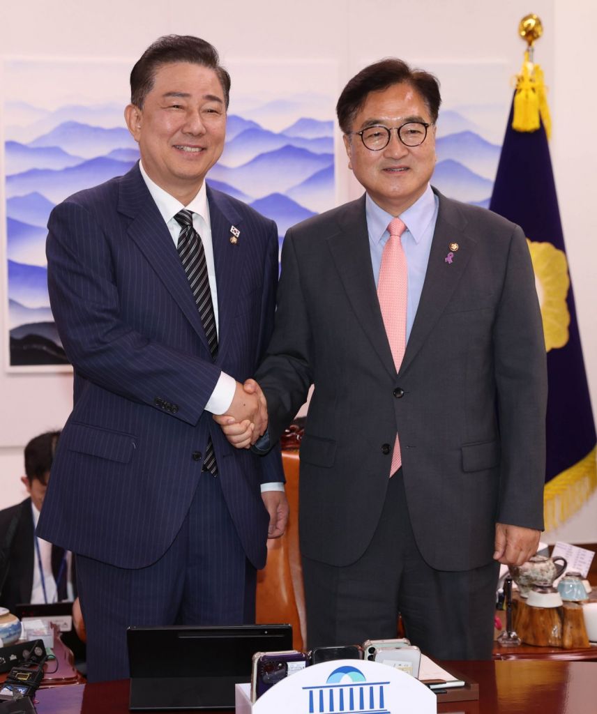 우원식 국회의장이 김병기 더불어민주당 당 대표 직무대행 겸 원내대표가 신임 원내대표로 선출된 후 처음 만났다. 민주당은 시급한 법안 및 추가경정예산(추경) 처리를 위해 공석인 법제사법위원장, 예산결산특별위원장을 선임할 수 있도록 본회의를 열어달라고 요청했다.