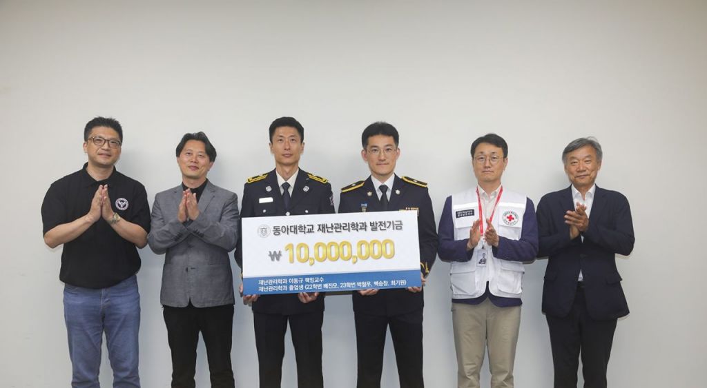 동아대학교(총장 이해우)는 대학원 재난관리학과 졸업생 4명과 이동규 책임교수가 1000만원의 발전기금을 기부했다고 16일 전했다.