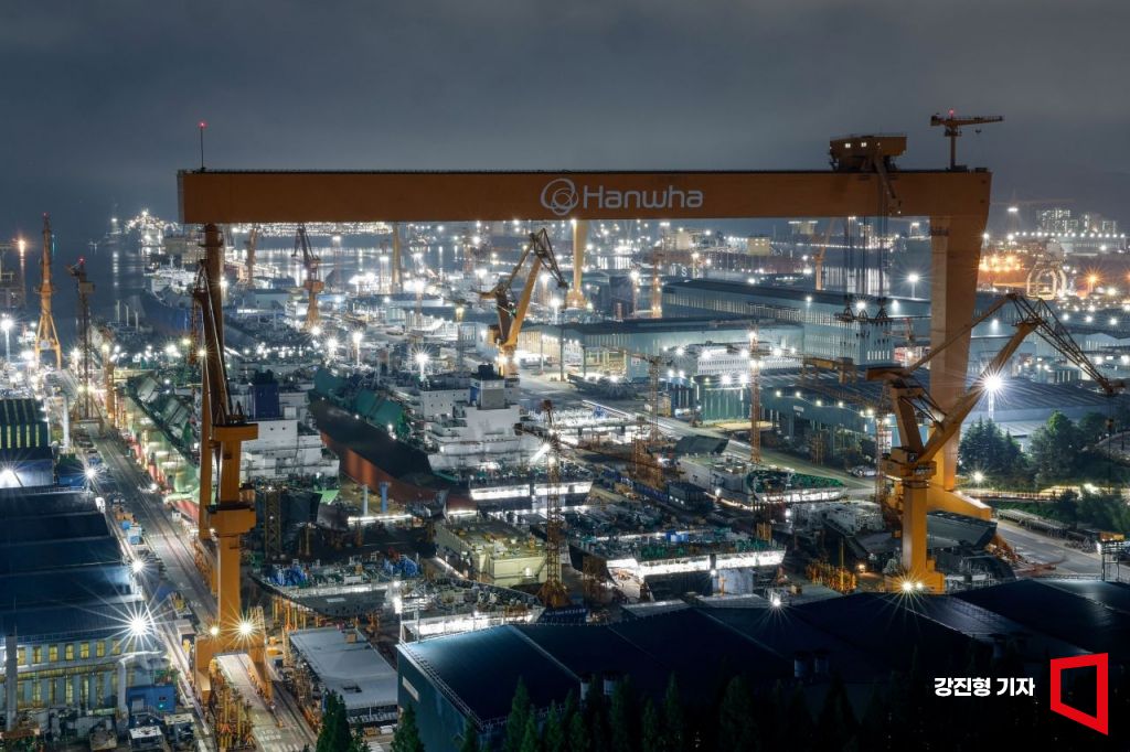 한국 경제를 지난 50년간 견인한 제조업이 침체에서 좀처럼 벗어나지 못하고 있다. 중국 기업의 부상, 미국 관세 장벽 등 각종 변수가 K제조업을 위협하고 있다. 하지만 희망이 전혀 없는 것은 아니다. K조선은 1분기 수주액이 136억달러로 지난해 같은 기간에 비래 41.4% 증가하면서 3년 만에 분기 기준 수주실적 세계 1위로 복귀했다. 액화천연가스(LNG) 운반선 여러 척을 동시에 건조하고 있는 경남 거제 한화오션 옥포조선소 야드 독에서 한밤중에도 불을 밝히고 야간작업을 이어가고 있다. 아시아경제는 창간 37주년을 맞아 세계 최고 수준의 조선산업의 발전과 국가 경제 부흥을 기원하며 거제 조선소 야간작업 현장을 사진으로 담았다.